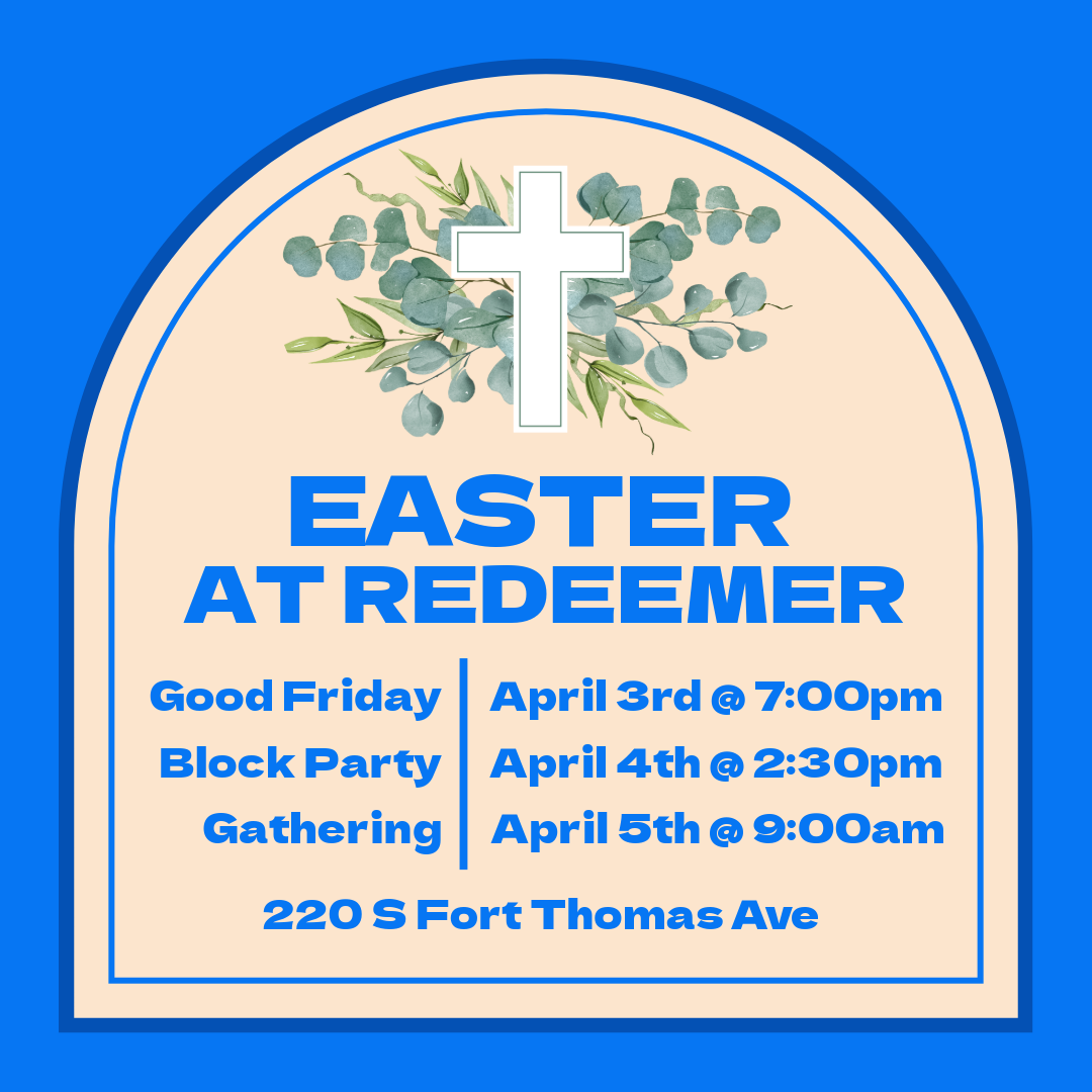 Looking for a church this Easter? Here are some great opportunities to connect with Redeemer: